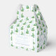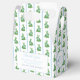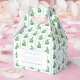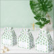 Elegantes cajas de favores con un patrón hecho de mi ilustracion de conejo topiario de paja y rayas de ricrac azul pálido. En cada extremo se encuentra el escudo monograma de 3 letras del bebé en cada lado. El panel frontal contiene el texto del evento y el mensaje, que puede personalizar.