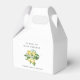 Añada un toque dulce a su ducha de novias con esta elegante caja de favores con tema de limón de Redwood & Vine Design Co. Con arte de cítricos de color de agua y texto personalizado, esta encantadora caja es perfecta para presentar dulces, dulces o regalos en duchas de novias, fiestas de jardín y celebraciones de verano.