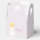Primer Chica de la Santa Comunión. Este hermoso y elegante diseño de la Primera Comunión de una niña rubia que sostiene su primer rosario está en un dulce fondo lila. Aprecie los grandes recuerdos de la primera comunión sagrada de su hijo con este hermoso diseño. Echa un vistazo a los accesorios, papel y regalos de comunión de la Primera Comunión que coinciden.