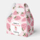 Una encantadora caja de favores rosa con adorables ilustraciones de fresa, perfecta para mandar a los huéspedes a casa con dulces recuerdos y dulces dulces. (Obra de arte generada por IA)