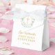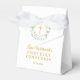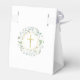 Elegante caja de favor de primera comunión floral con una bonita corona de laurel y cruz dorada con nombre personalizado y fecha especial en tipografía dorada chic. También puedes personalizar con tu propio mensaje de agradecimiento debajo de la tapa. ¡Una forma perfecta de dar las gracias a tus invitados! Diseñado por Thisisnotme©