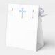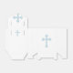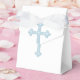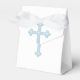 Cajas de recuerdo elegantes de cruz azul perla para primera comunión, bautizo y confirmación. Esta hermosa caja de recuerdo de primera comunión con cruz azul puede ser personalizada con texto y el color de fondo y lazo de su elección.