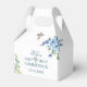 Impresionante caja de favores de la Primera Comunión Santa con elementos florales y verdes de color azul boho con cruz rústica y cáliz. Plantilla de texto personalizable para incluir sus propios detalles. La perfecta caja de regalo de agradecimiento para sus invitados.