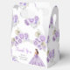 Esta caja de agradecimiento de quinceanera presenta una hermosa princesa en un polvoriento vestido de bolas moradas con arreglos florales. Esto es perfecto para una fiesta de cumpleaños de quinceañera.