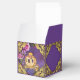 Cajas de favores de cumpleaños de princesa de cuento de hadas con rosas rosadas bonitas en un fondo morado brillante con hermoso carruaje real de princesa. Puede personalizar fácilmente esta hermosa caja de cumpleaños de princesa rosa y morada para su evento simplemente agregando texto en el estilo de letra y color, y redacción de su elección. Este es un diseño impreso sin joyas reales, cintas, purpurina, etc.