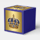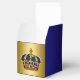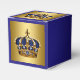Cajas de regalos para baby shower del príncipe de la corona azul real y dorado. Estas elegantes cajas para baby shower real se personalizan fácilmente para su evento agregando texto.