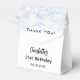 Una elegante y glamorosa fiesta de cumpleaños número 21 (o cualquier edad). Un fondo blanco moda con purpurina falso azul claro, chispas. Con el texto: ¡Gracias! Personaliza y agrega tu nombre. El nombre está escrito con un guión de estilo moderno con letras a mano.