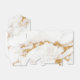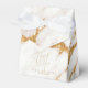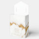 Un fondo abstracto que recuerda al mármol de las veneraciones purpurinas en tonos dorados a través del beige suave y el blanco es el telón de fondo para un texto de escritura elegante y un diseño moderno en las piezas de esta hermosa suite boda. La caja de la preferencia "gracias" del boda que se muestra aquí incluye sus nombres y la fecha del boda en un fondo de mármol. Busque ID816 para ver otras piezas y opciones de color para este conjunto.