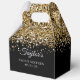 Crea tus propias cajas de favores minimalistas Sweet 16 cumpleaños. Una caligrafía clásica y elegante, acompañada de un tipo de letra serif con todos los mayúsculas. El falso purpurina de oro glam digital arte imprimirá como una foto en estas cajas. Personalizar el fondo negro o los estilos de fuente blancos para crear el tuyo para su celebración especial.
