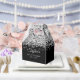 Crea tus propias cajas de favores minimalistas Sweet 16 cumpleaños. Una caligrafía clásica y elegante, acompañada de un tipo de letra serif con todos los mayúsculas. El falso purpurina gris plateado glam arte digital imprimirá como una foto en estas cajas. Personalizar el fondo negro o los estilos de fuente blancos para crear el tuyo para su celebración especial.