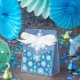 Una hermosa fiesta de copos de nieve azul y blanco favorece la caja de carpas para cualquier tipo de evento invernal