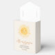 ¿Estás planeando una ducha para bebés? Esta caja de favores de la ducha de bebé con temática solar presenta un bonito sol sonriente amarillo y "un pequeño rayo de sol" en una tipografía de escritura elegante con un fondo crema. Personalizable fácil. Acuarela original © Michele Davies.