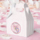 Envuelva sus regalos y golosinas del Día de San Valentín en estas bonitas cajas de favor que presentan rayas rosadas, una flor morada, un corazón rosa y texto personalizable que dice 'Feliz Día de San Valentín' y 'Sé Mío', y un lugar para el nombre del que regala. Use estas cajas para envolver regalos a su novia, hija, madre o nieta. Modifique las tres áreas de texto para satisfacer sus necesidades.