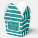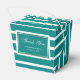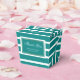Cajas de novios verde azulados personalizados modernas con rayas blancas en un fondo verde azulado. Personalice fácilmente estas cajas verde azuladas de favores matrimoniales con los detalles de su boda. Nuestras modernas cajas verde azuladas son perfectas para su elegante fiesta de bodas verde azulada. Estas cajas de agradecimiento personalizadas se pueden personalizar para otras ocasiones, como duchas de novias o de bebés.