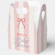 This coquette baby shower favor box features a red bow on a cream background with pink stripes. Personalize it for your needs. You can find matching products at my store.