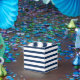 Navy Blue rayas blancas patrón de regalo Favor Box