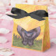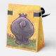 Desfile Animal Cute Hippopótamo Caja de Favor de Boda creada por Imagine That! El diseño es para el lado divertido de usted, presentando nuestro arte original de un lindo personaje de hipopótamo parado en la hierba de la sabana con un cielo amarillo texturado, naranja y una divertida frontera violeta pintada por el talentoso ilustrador para niños, Traci Van Wagoner. Este lindo caballo de agua hace un gran regalo para cualquiera que ame hipopótamos, animales africanos, animales de safari, hipopótamos africanos, caballos de agua y divertidos arte animal.