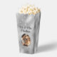 Haz que tu celebración del 25° aniversario del boda de plata sea especial con estas cajas de favores de palomitas de personalizado. Con un impresionante fondo de Relieve metalizado plateado adornado con falsos diamantes brillantes, estas cajas favoritas le dan un toque de elegancia y brillo a cualquier evento. Personaliza con el apellido de la pareja, fecha especial y una preciada foto en el frente. En la parte trasera, los huéspedes pueden encontrar fácilmente un código QR y una plantilla de texto que les indica que suban sus fotos y vídeos a un sitio web dedicado. Estas cajas son perfectas para aperitivos de eventos, golosinas y cualquier ocasión que merezca un poco más de resplandor.