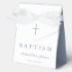 Religious Cross Dusty Blue Script Boy Baptism Favor Boxes .