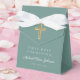Religious Cross Green Boy First Communion Favor Boxes.
