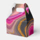 Pequeña caja de favores con un diseño abstracto de aspecto grueso. Los colores rosa y negro se mezclan y se mezclan en movimiento. Espolvorines de purpurina de oro falso entre las capas.