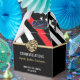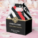 Este diseño cuenta con una bandera de bomberos con rayas blancas y negras y una delgada franja roja. "Felicitaciones" y la insignia de un bombero se sienta por encima del nombre del bombero, teniente o jefe que se gradúa o se retira. ¡Celebren con estilo!