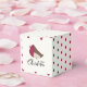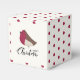 almohada estilo Robin y Red Bow sencilla y elegante. Diseño moderno limpio con Robin y Navidades saludando al frente. Al revés, hay un arco rojo y espacio para el personalizar por su nombre y sentimiento. Los otros lados de la caja están cubiertos con puntos de polka.