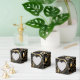 A rich black cube glows with gold filigree, framing a heart window that hints at love inside. Designed with Valentine’s Day romance in mind, its elegant pattern draws from classic luxury gift styling. Perfect for Valentine gifts yet versatile for weddings, anniversaries, or keepsakes that speak straight to the heart.