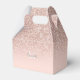 Preciosa caja de favores con glitter rosa dorado femenino, nombre en letra cursiva elegante y monograma sobre un fondo rosa claro. Diseñado por Thisisnotme©