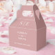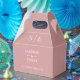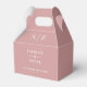 Elegante y polvorienta caja de favores de boda rosa rosa personalizada con sus nombres, iniciales de monograma y fecha de boda. Diseñado por Thisisnotme©