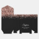 Crea tus propias cajas de favores minimalistas Sweet 16 cumpleaños. Una caligrafía clásica y elegante, acompañada de un tipo de letra serif con todos los mayúsculas. El falso rosa purpurina de oro glam arte digital imprimirá como una foto en estas cajas. Personalizar el fondo negro y los colores del tipo de letra blanco para crear el tuyo propio para su celebración especial.