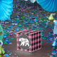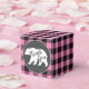 El diseño de la ducha es de temática higiénica, con una silueta de oso. ¡El cheque en búfalo rosa es perfecto para una ducha de bebé con tema de bosque o lodge!