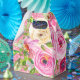 La purpurina rosa es el telón de fondo perfecto para esta rosa femenina de estampado floral en tonos rosa, melocotón y crema.