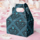Caja de regalo con patrón damasco rústico vintage negro y turquesa con rosas aqua iridiscentes ideal para bodas góticas o Halloween!