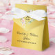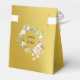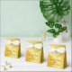 Elegante caja de regalo de aniversario de bodas de oro número 50 con guirnalda de rosas y nombres personalizados y fecha especial en tipografía elegante sobre fondo dorado. También puedes personalizar con tu propio mensaje de agradecimiento debajo de la tapa. ¡Una forma perfecta de dar las gracias a tus invitados! Diseñado por Thisisnotme©