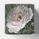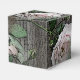 Hermosas rosas rosadas esparcidas por la madera templada.