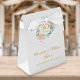 Elegante caja de regalo de aniversario de bodas de oro 50 con flores, que incluye una guirnalda de rosas bonitas con nombres personalizados y fecha especial en tipografía dorada elegante. También puede personalizar con su propio mensaje de agradecimiento debajo de la tapa. ¡Una forma perfecta de dar las gracias a sus invitados! Diseñado por Thisisnotme©