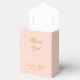 Una sencilla caja de favores de boda rosa con un color moderno y una elegante caligrafía dorada. El mensaje Gracias en la solapa (y debajo) y los nombres (en la parte delantera, en la parte inferior) están escritos en una caligrafía elegante y la fecha en dígitos más pequeños bajo el nombre. Todo el texto es blanco y se puede cambiar.