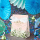 Una elegante caja de chica con favores para la ducha de bebé con vegetación y tipografía de oro de moda sobre un fondo rosa rubor. Puedes personalizar con tu propio mensaje de agradecimiento debajo de la tapa. ¡Una forma perfecta de agradecerles a sus huéspedes! Diseñado por Thisisnotme©