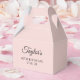 Crea tus propias cajas de favores minimalistas de cumpleaños número 60. Una caligrafía clásica y elegante, acompañada de un tipo de letra serif con todos los mayúsculas. Personalizar el fondo rosa pálido o los estilos de fuente negros para crear el tuyo para su celebración especial.