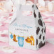 This western baby shower favor box features a watercolor clothesline with boots, hat, jeans, and a baby bodysuit, perfect for celebrating your little cowboy. Great for holding candies or small gifts, it's a sweet detail for a rustic rodeo baby shower or wild west baby celebration.