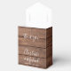Caja de favores de boda rústica con luces de cuerda de bonito, nombres de guión de firma y fecha especial establecida en tipografía moderna en un fondo de paneles de madera. Puedes personalizar con tu propio mensaje de agradecimiento debajo de la tapa. ¡Una forma perfecta de agradecerles a sus huéspedes! Diseñado por Thisisnotme©