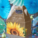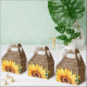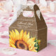 Pon tus regalos de matrimonio/ducha en estas románticas cajas rústicas florales con un girasol en un fondo de burrega adornado con encaje floral blanco y luces de cuerdas.