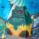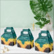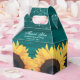 Caja de favores de boda verde azulada rústica y personalizado con un fondo de madera verde azulada con girasoles. Personalice fácilmente esta verde azulada caja de favores florales con los detalles de su evento.