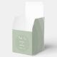 Un diseño moderno de color verde sabio con acentos minimalistas y monograma. Este diseño es ideal para todas las bodas de primavera, verano, otoño e invierno. Un elegante diseño acuático de temática contemporánea. Un diseño elegante de caja de favores de boda con elementos modernos. También hay disponibles invitaciones de boda coincidentes y otros artículos de papelería.