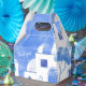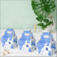 Un moderno cuadro acuático azul y blanco de Oia en la magnífica isla griega de Santorini. Arte original de Nic Squirrell. Cambie el texto de Gracias a personalizar.