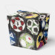 Caja de favores estilo retiro con una imagen de un surtido de coloridas pelotas de fútbol frente a una red de goles de fútbol sobre negro. Vea confección, caja de favores, etiqueta de favor, bolsas de regalo, etiqueta, pegatina y papel de envoltura. Ver toda la colección de cajas de favores del Día del Padre en los TOUCHES ESPECIALES | Sección de favoritos de partido. Este producto no está asociado ni afiliado al titular del derecho de autor original.