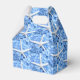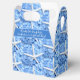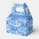 Boda de Seaside Garden caja de agradecimiento con texto. El diseño de las estrellas blancas y las flores azules con dos líneas de texto delante para dar las gracias a los clientes bodas o ducharse. El elegante diseño de temática playera contiene imágenes realistas de flores y una estrella del mar. La fotografía hace un patrón para cubrir la caja que se dobla para hacer un mango.