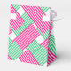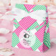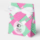 ¡Y se va al altar! La caja de favores de fiesta de estilo carpa con cierre de cinta blanca presenta a una señora con su sombrero Derby en la parte frontal con su mensaje en un fondo de bloques diagonales de rayas rosadas, verdes y blancas. Divertidas cajas para despedida de soltera o cambie la redacción y utilice para una fiesta de cumpleaños o cualquier ocasión. 3" de ancho x 1.5" de largo x 3.25" de alto. Artículos COINCIDENTES en nuestra tienda.
