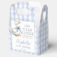 These charming baby shower favor boxes feature a cute little goose wearing a blue bow and a blue gingham background. Designed by Thisisnotme©